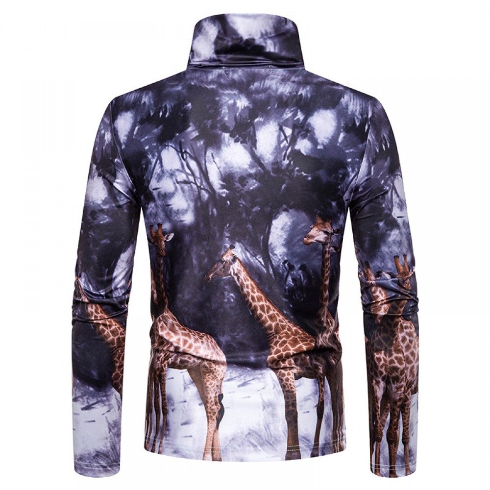 New Men's Plus Size 3D Giraffe Print High Neck Long Sleeve T-Shirt Bottoming Shirt