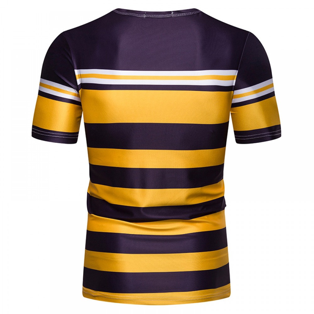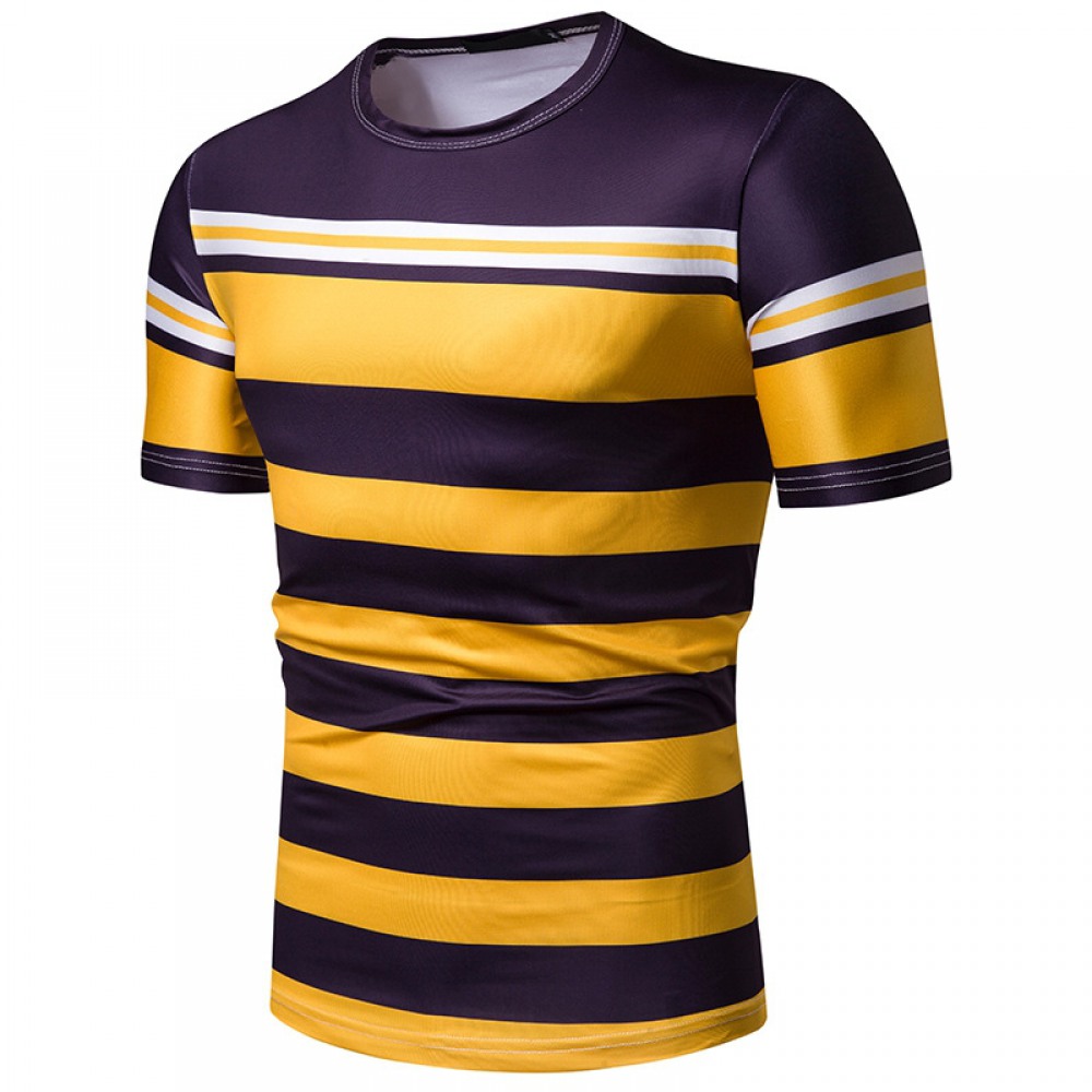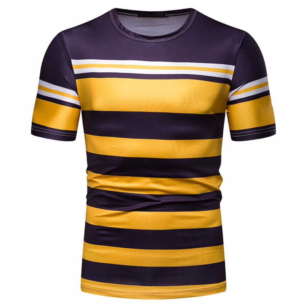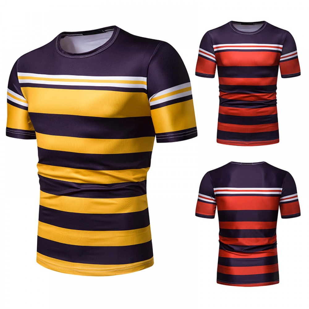 New Summer Men's Short-Sleeved T-Shirt Contrast Striped Slim Casual T-Shirt