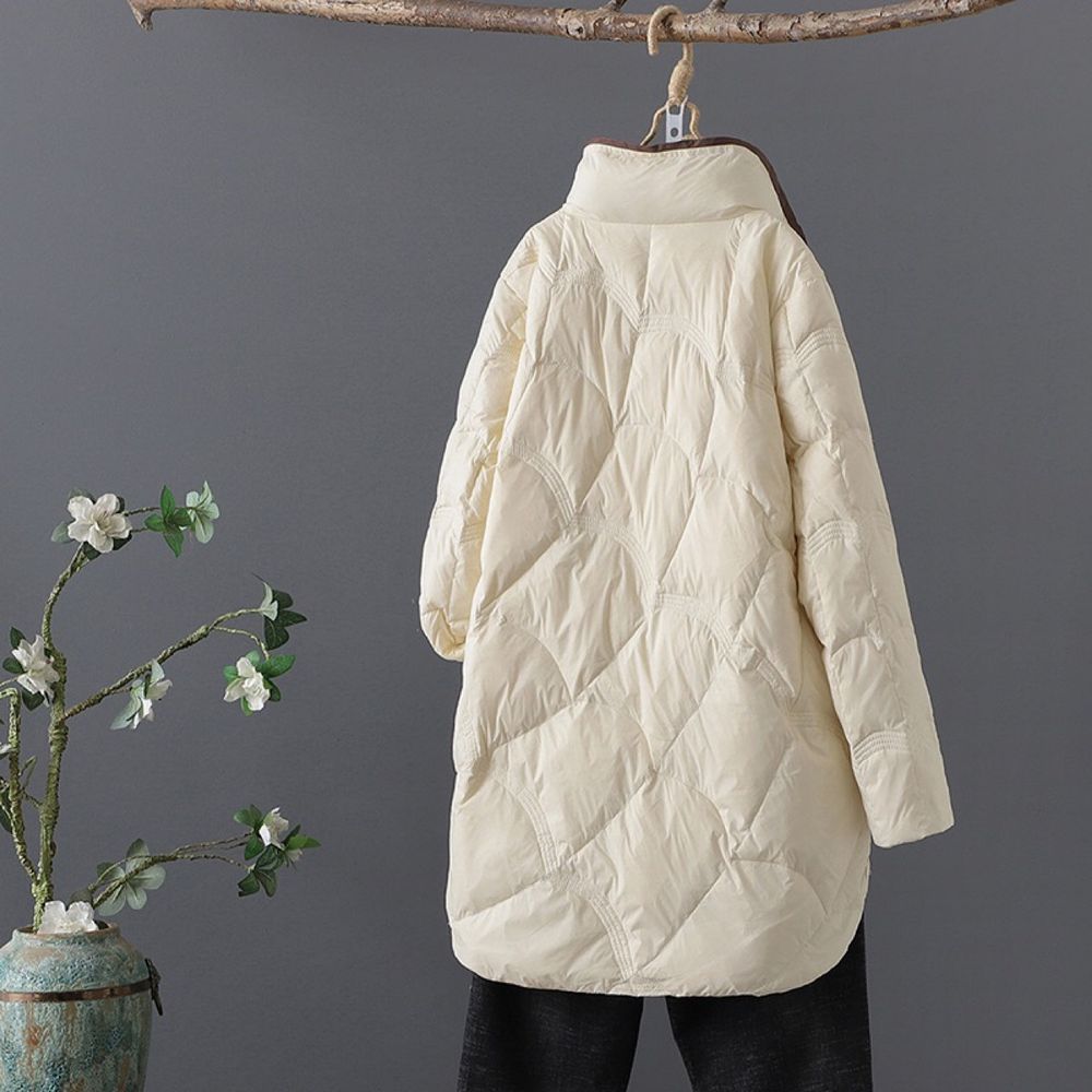 Retro Artistic Mid-Length Stand Collar Down Jacket For Women In Winter