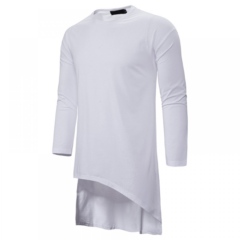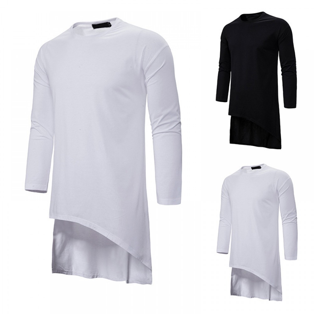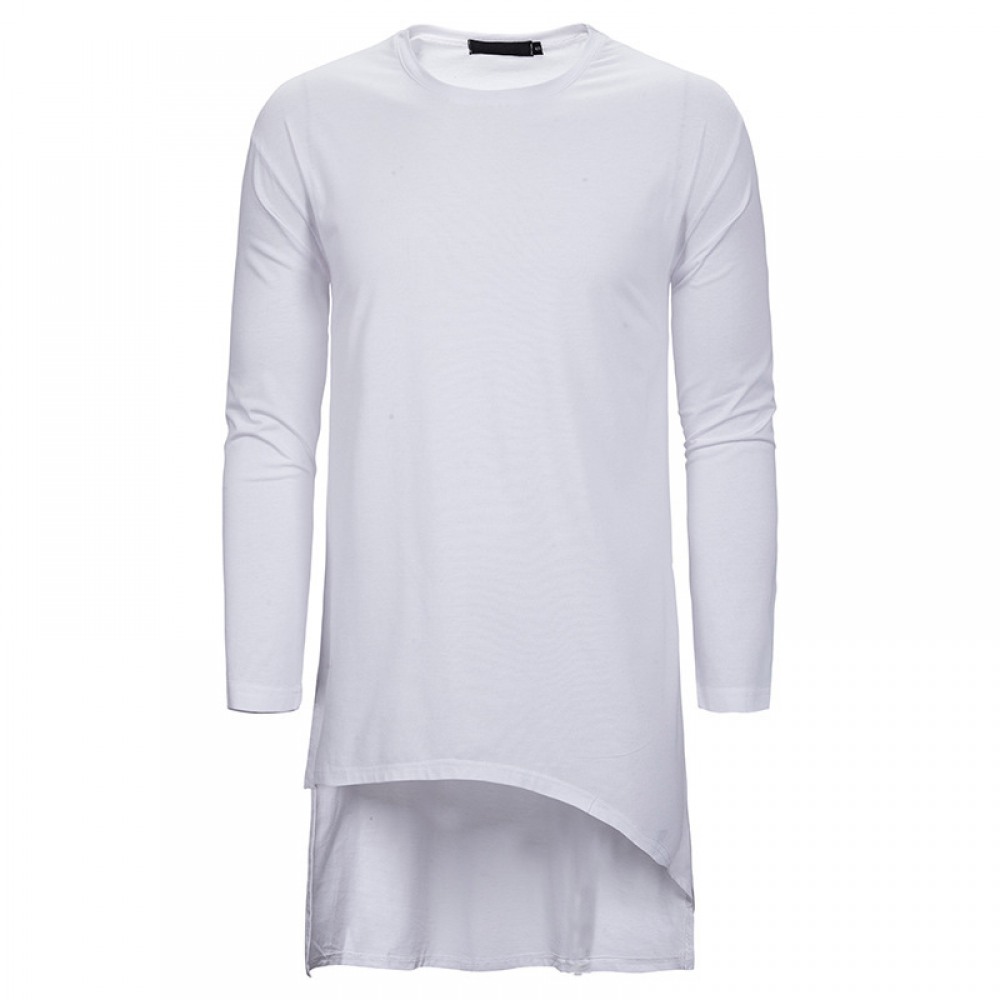Round Neck Long T-Shirt Men's Loose Dark Trend Irregular Hem Long-Sleeved T-Shirt