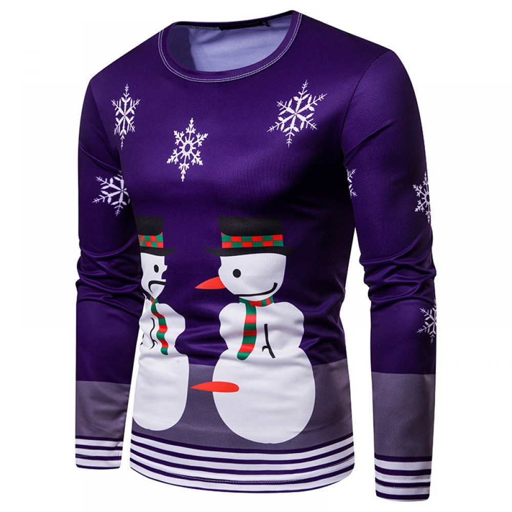 New 3D Personality Printing Fashion Men's Christmas Snowman Pattern Long Sleeve T-Shirt