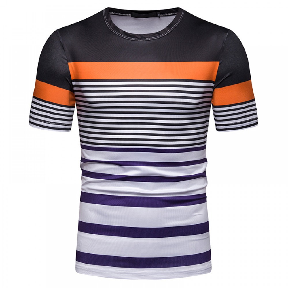 New Summer Men's Short-Sleeved T-Shirt Contrast Striped Slim Casual T-Shirt