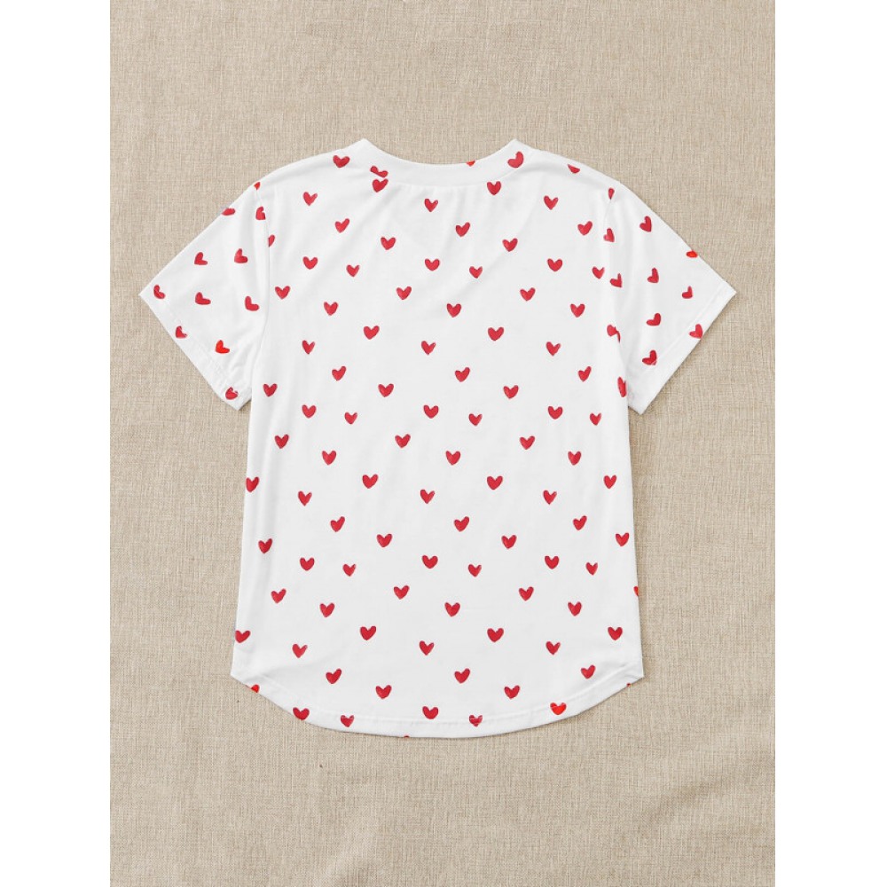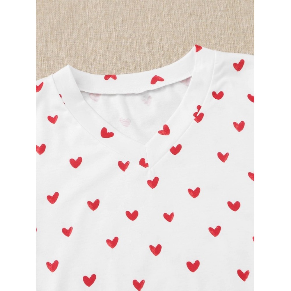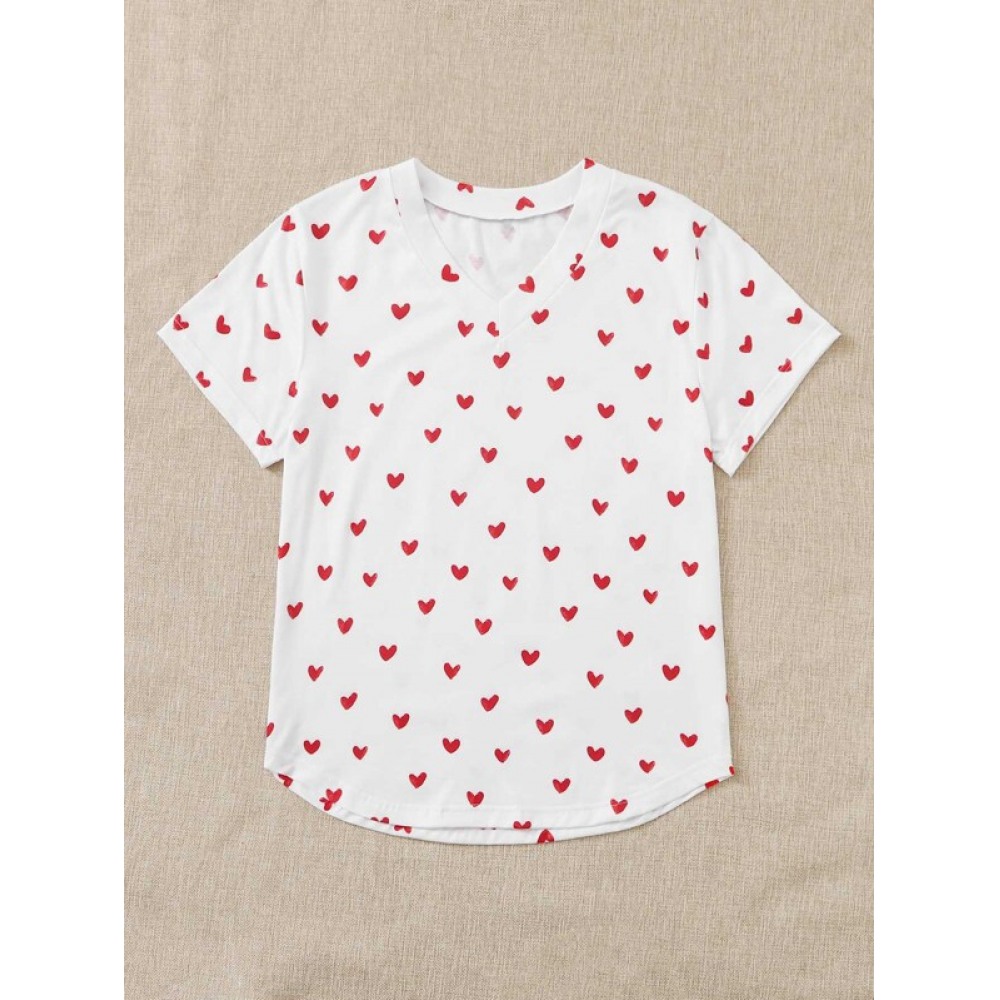 Summer New Style Lovely Love Printing V-Neck Short-Sleeved T-Shirt